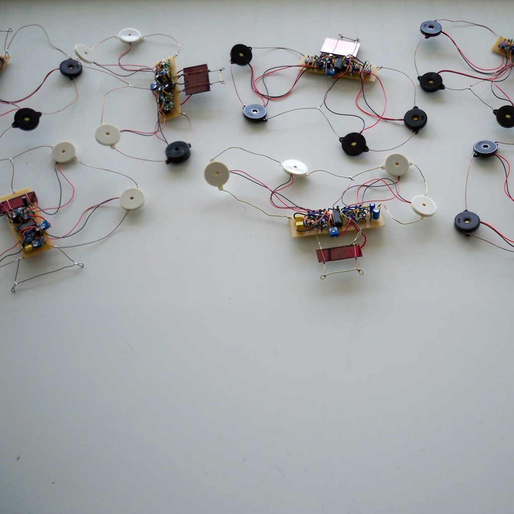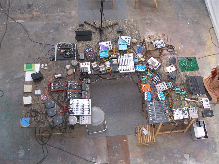 The sonic material is produced by a feedback loop. The reactions that form and propagate within the circuit transform it into a sonic system that is largely unpredictable.