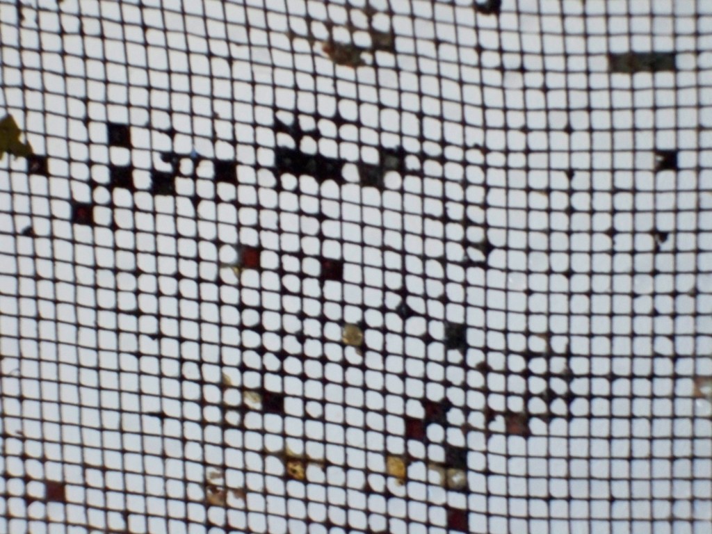 Ce réseau de feuillard suspendu dans l’espace (Benthos) sert de résonateur à un groupe de générateurs de sons électroniques, »piézopodes ». Chaque piézopode est constitué de 4 oscillateurs générateurs d’impulsions. Ils sont alimentés en électricité par des cellules solaires et l’intensité de la lumière affecte leur fonctionnement d’une manière assez peu prévisible. Des variations se produisent ainsi tout au cours de la journée, de l’aube au soir.